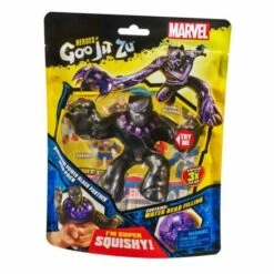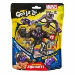 This Goo Jit Zu Marvel Hero can stretch, twist and squish his unique Goo filling and move in a way like he never has before. With his extra, super squishy Goo you can squeeze his body and watch his special purple water bead filling bulge out and move around inside of him. Play with your Black Panther Hero in a new GOOEY way and help save the day – with NO mess.