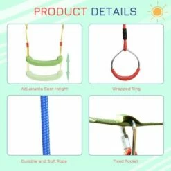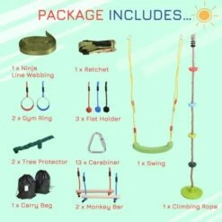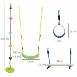 Quality material and complete accessories ensures children safety when playing. Equips with monkey bars, gymnastic rings, climbing rope, fist holder and swing, your kid can play with their friend together. Suitable for children aged 5-12.