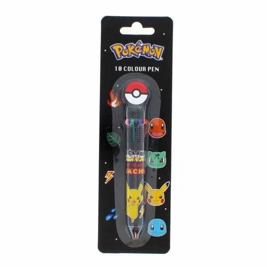 Write and doodle with this Pikachu pen! This useful medium ballpoint pen lets you choose from an amazing 10 colours and features the iconic Pikachu. It also includes a fun Pokeball shaped spinning topper to play around with.