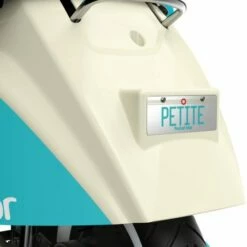 With the two-tone jewel box candy coloured body, 10 inch white wall pneumatic tyres, colour matching padded seat, retractable centre kickstand, twist-grip throttle control and hand-operated brake, the ride on the vintage-inspired Pocket Mod Petite is as smooth as it is stylish.