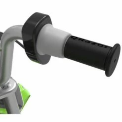 It features an adjustable-angle, riser-style handlebars with a twist grip throttle and a hand-operated rear brake.