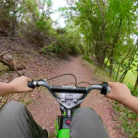 . Also features a retractable kickstand, a twist grip throttle folding metal foot pegs and a hand operated rear brake